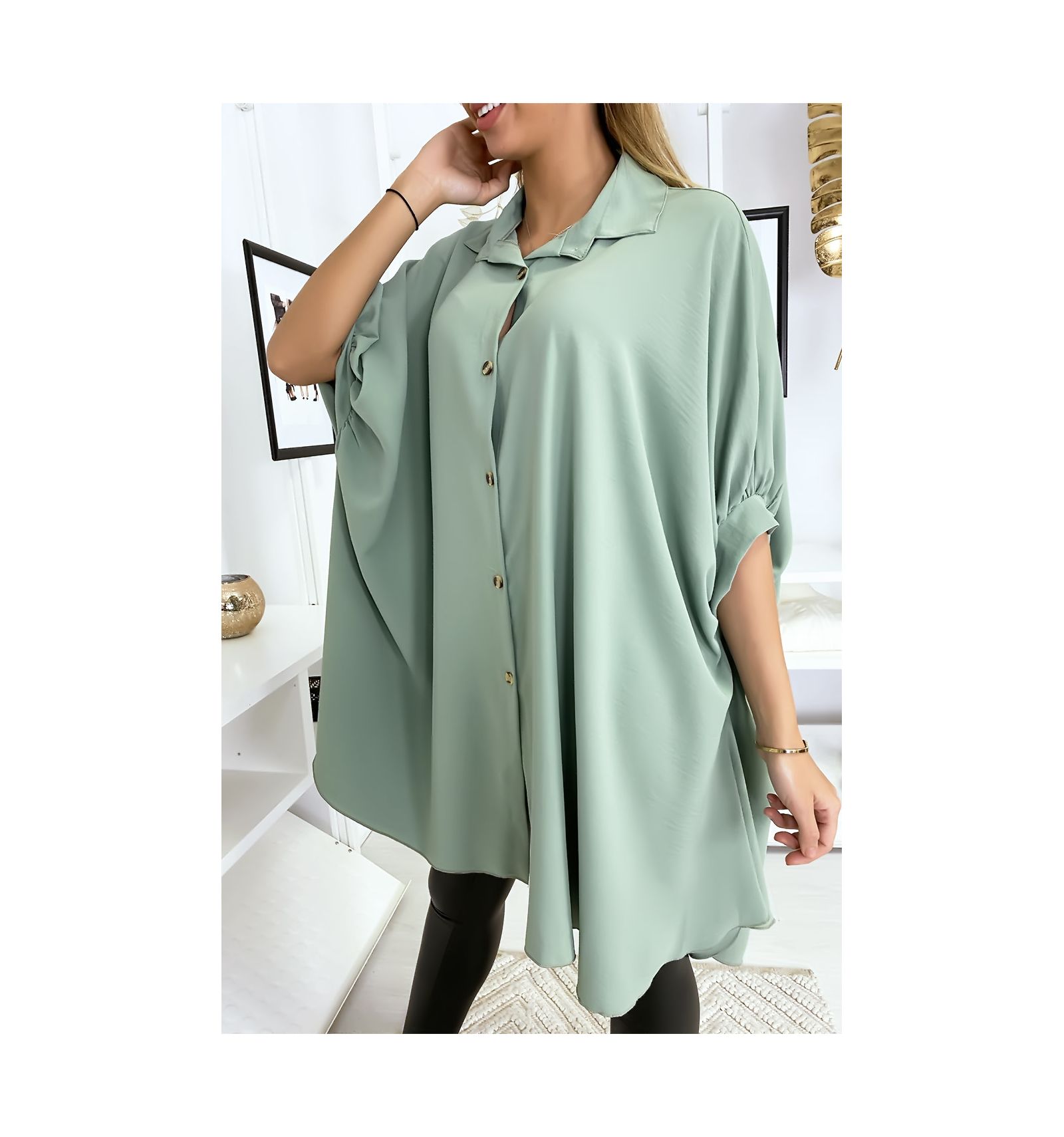 Chemise Turquoise Femme: Chemise turquoise bicolore satinée à ceinture.